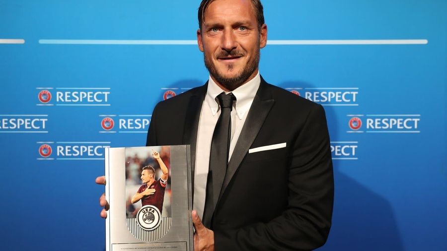 Totti was presented his award by UEFA president Aleksander Ceferin, in recognition of the loyalty and quality the Italian showed during his 25-year career with the Giallorossi.