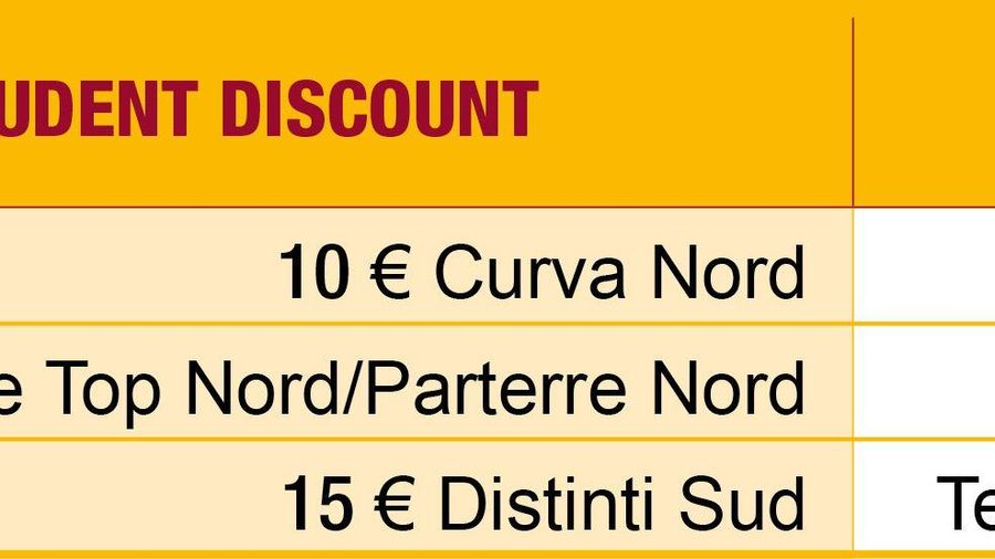 AS Roma has created a special ticket price for students of all ages, valid for tickets in the sectors indicated below. All you need to do is head to any AS Roma Store or get in contact with our Call Center – students of school age will need to show an ID document, while university students will be asked to show their registration card.