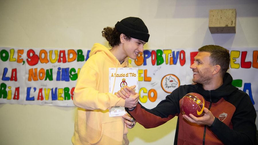 The Roma striker was a special guest at Rome's Galileo technical college, as he spoke with students about the importance of qualities like fair play, respect and equality - both on the football pitch and in life.