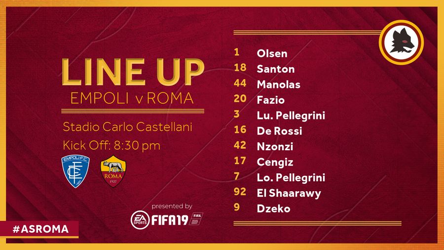 Daniele De Rossi was passed fit to start, while Edin Dzeko led the attack ahead of Stephan El Shaarawy and Cengiz Under.