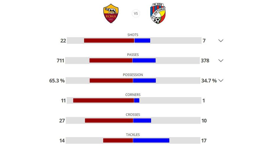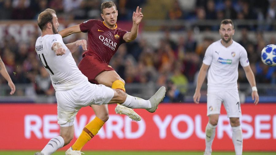 Edin Dzeko, just as he did two years ago in the Europa League against the same opponent, scored a hat-trick to take the game away from the Czech champions - as Cengiz Under and Justin Kluivert also got on the scoresheet.
