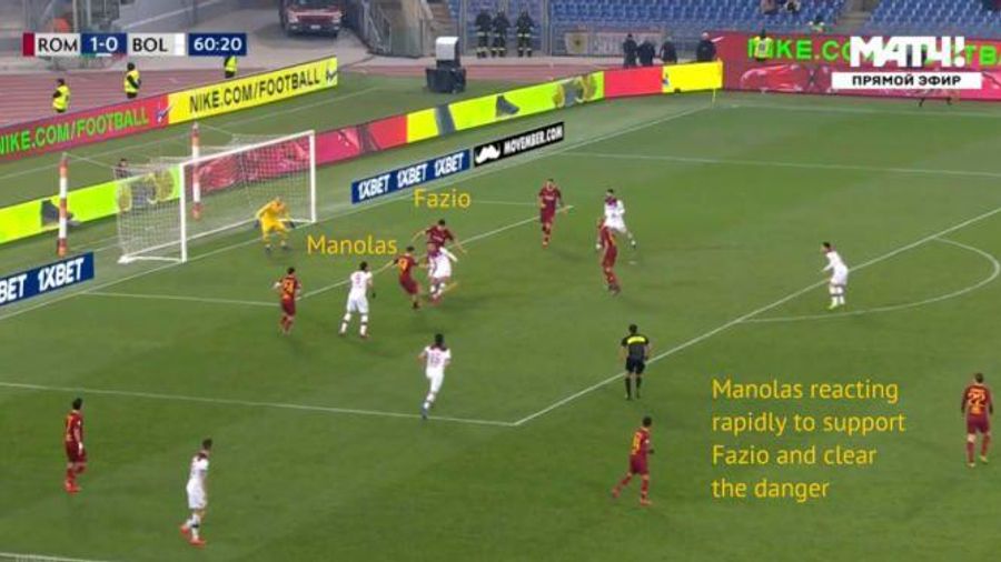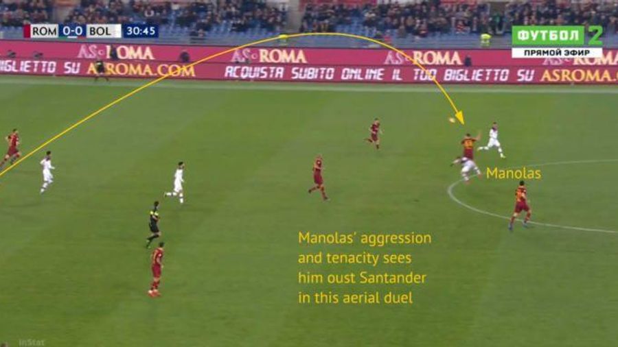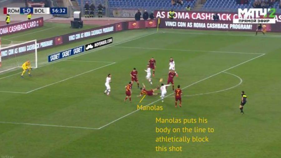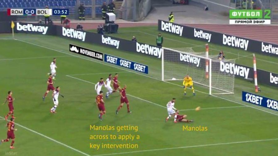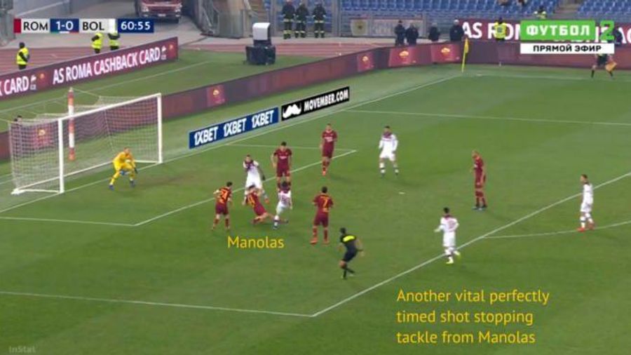 While Robin Olsen justifiably drew most of the plaudits following Roma's hard fought 2-1 win over Bologna, there could be no doubting what a crucial role Kostas Manolas played in ensuring all three points were obtained...