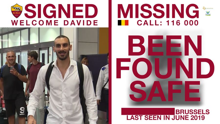 This is the second missing child to have featured in an AS Roma transfer announcement this summer who has been found safe and well.