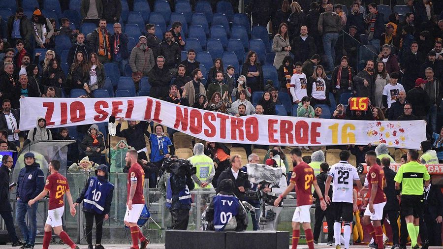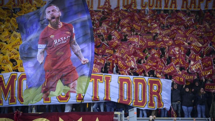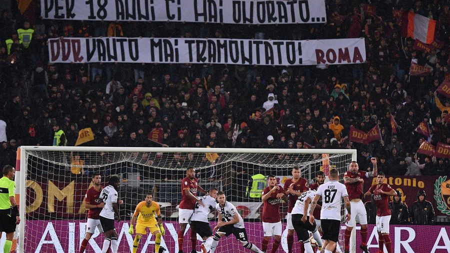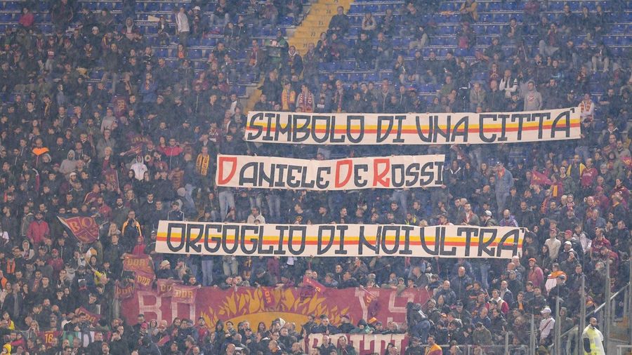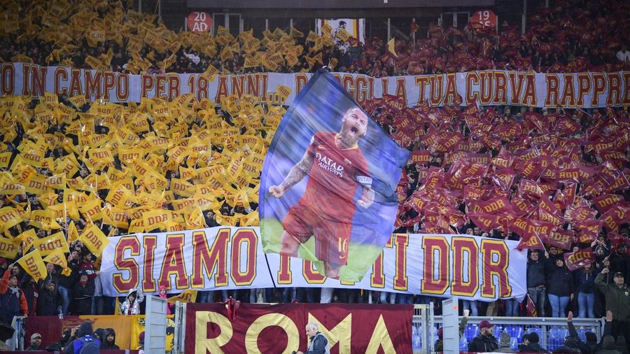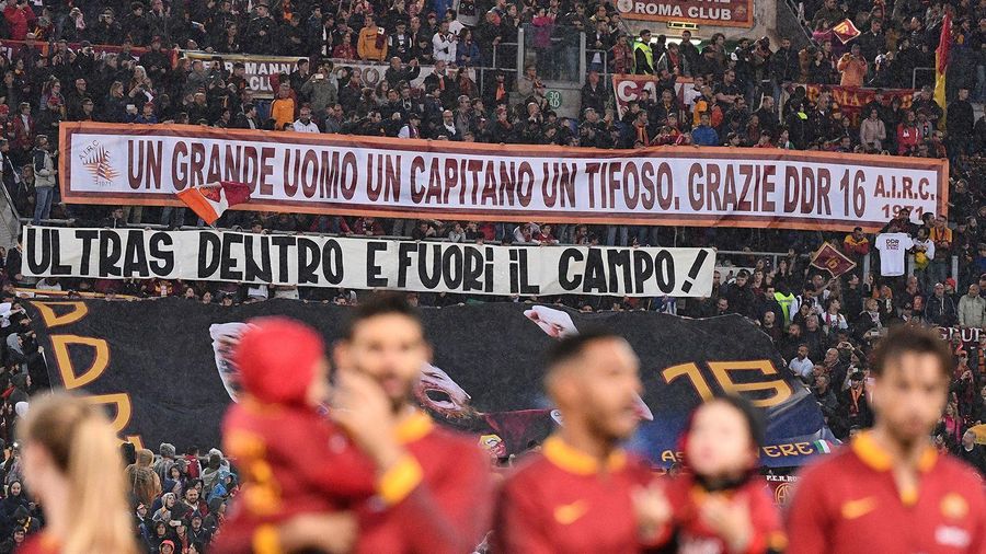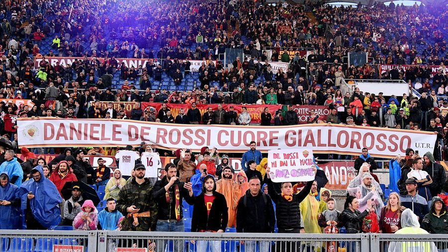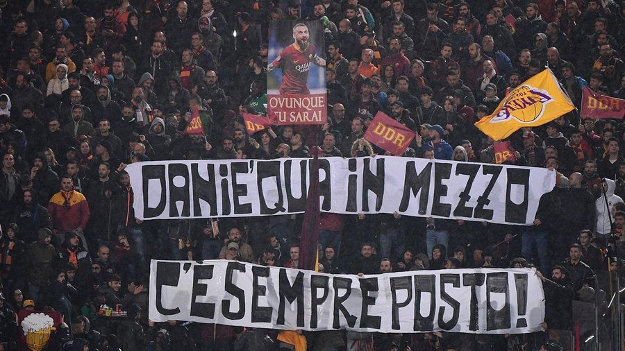 Alongside an impressive tifo that spanned the breadth of the Curva Sud before kick-off (photos at the bottom of this article), throughout the game a number of banners were raised to celebrate De Rossi and his incredible career.