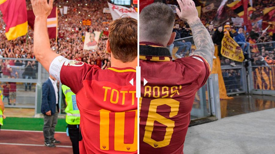 The two titans of Italian football, with 1402 appearances for the Giallorossi, both received incredible send-offs from the Curva Sud - a fitting representation of their importance to their club and their city.