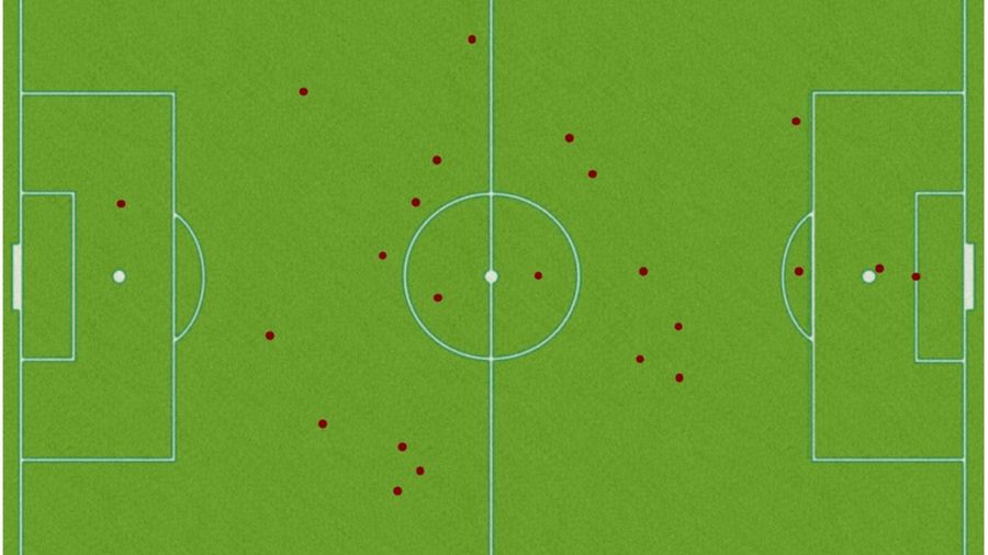 The map below shows all the headed duels Dzeko and Nzonzi battled for. Notice how many of them are in central areas.