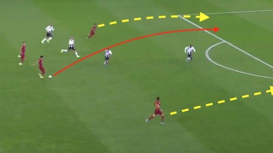 When everybody, the Udinese rearguard included, expected a simple ball to Zaniolo, Pastore managed to seemingly counterintuitively play a defence-splitting pass to Kluivert, which forced three of the four defenders to turn on the run and change direction.