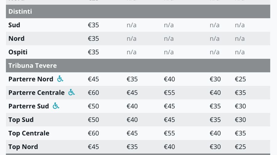 - A special ticket price (€20) is available for students of all ages. The promotion is available for seats in Tevere Top Nord and Tevere Parterre Nord. Under-19s need only present a recognised form of I.D. to take advantage, while those enrolled at university should also present their student card.