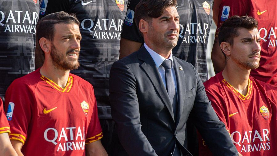 The Roma players posed for the annual photos in their Nike home kits and their suits made by Tombolini, the club's official fashion partner.