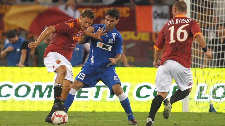 In the second leg, the Giallorossi romped home: winning 7-1 thanks to a Francesco Totti hat-trick, two goals from Daniele De Rossi and further strikes from Jeremy Menez and Stefano Okaka.
