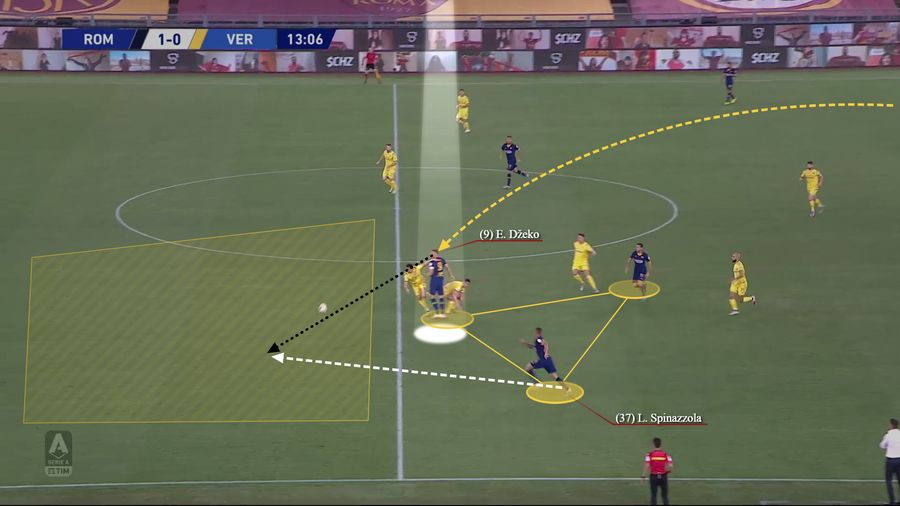 Knowing Verona would press high in their customarily aggressive man-on-man pressing scheme, Fonseca shrewdly instructed his team not to play out from the back and instead go long to Dzeko.