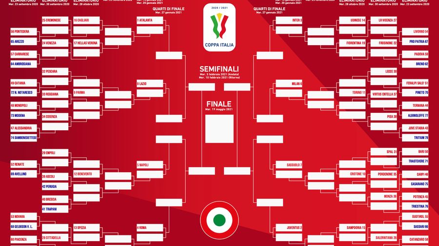 Juventus, Inter Milan and AC Milan are all on the other side of the draw, and can only face Roma in the final of this season's competition - which will take place on 19 May 2021.