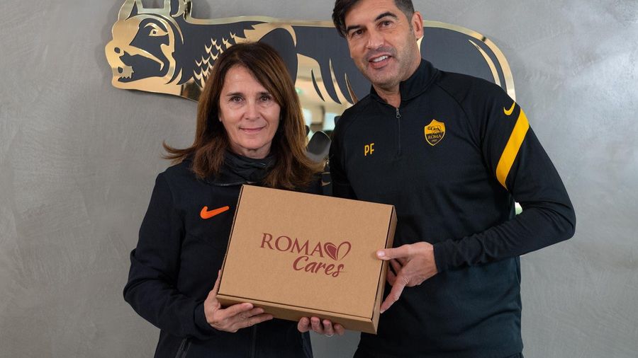 The boxes, containing key food items, were prepared at Trigoria by the club’s two first-team coaches, Betty Bavagnoli and Paulo Fonseca.