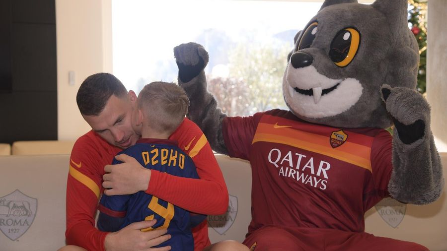On Monday things went one step further for the little boy - as he got to meet his hero at Trigoria.