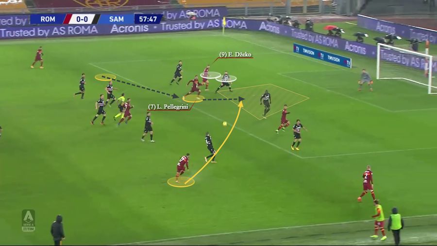 Factor in how he used opposite movements and rotated with his fellow attackers, and this amplified Roma's capacity to manipulate Samp's defensive line.