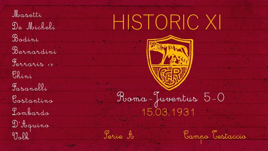 Below is the Roma line-up on that historic day, listed in the same order the names appear in the famous “Canzona di Testaccio” ('The Song of Testaccio').