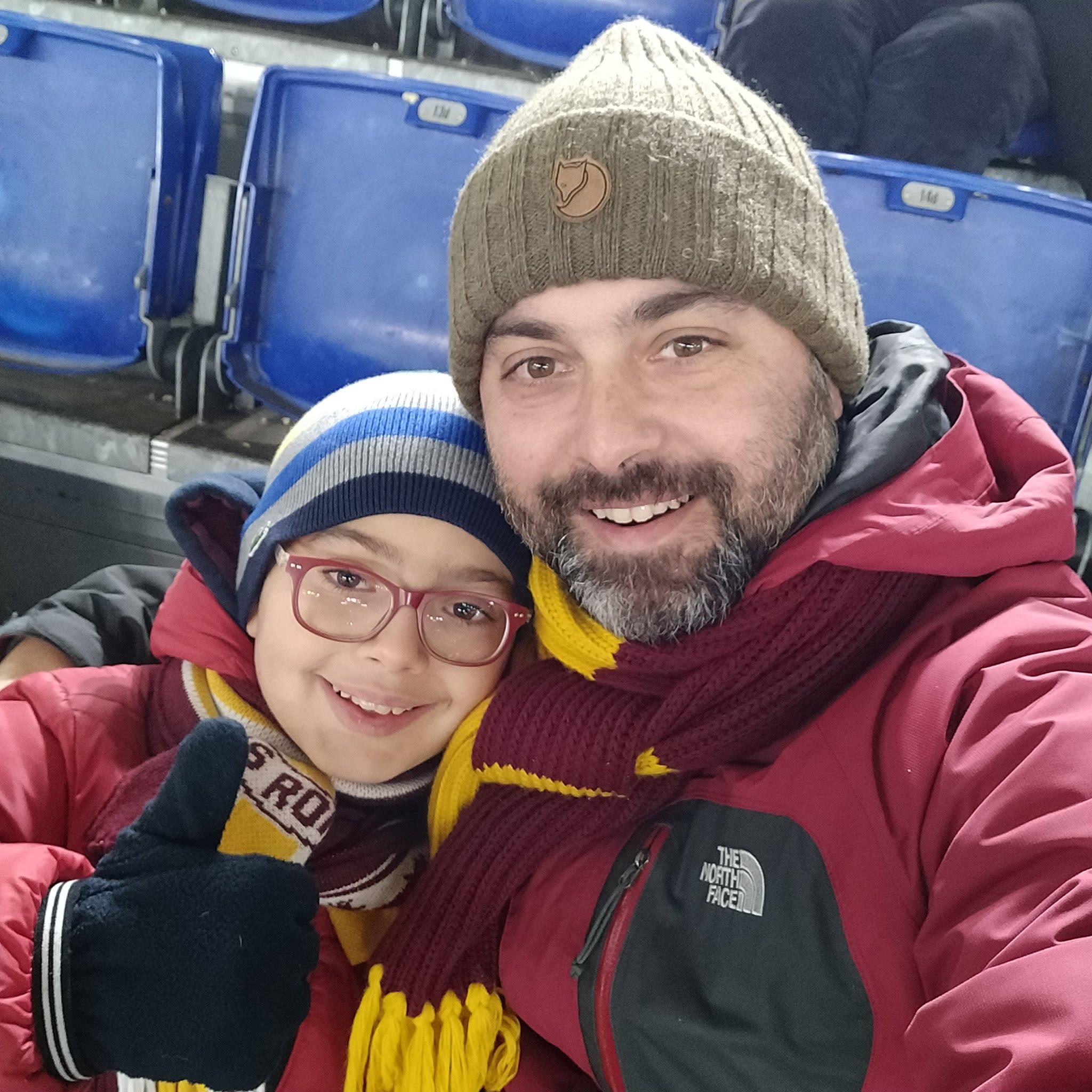 “My son and I almost always stick to the same ritual when we go to watch Roma. We park the car near Piazza Mancini, we cross the bridge and then we take a slow walk up the road. We always wear the same scarfs. I think supporting Roma was something I passed on to him the first time we went, a Roma v Cremonese match back in 1993, when he wasn’t even six years old. We lost, unfortunately, but Valerio was fascinated by the stadium, the fans, the colours…”