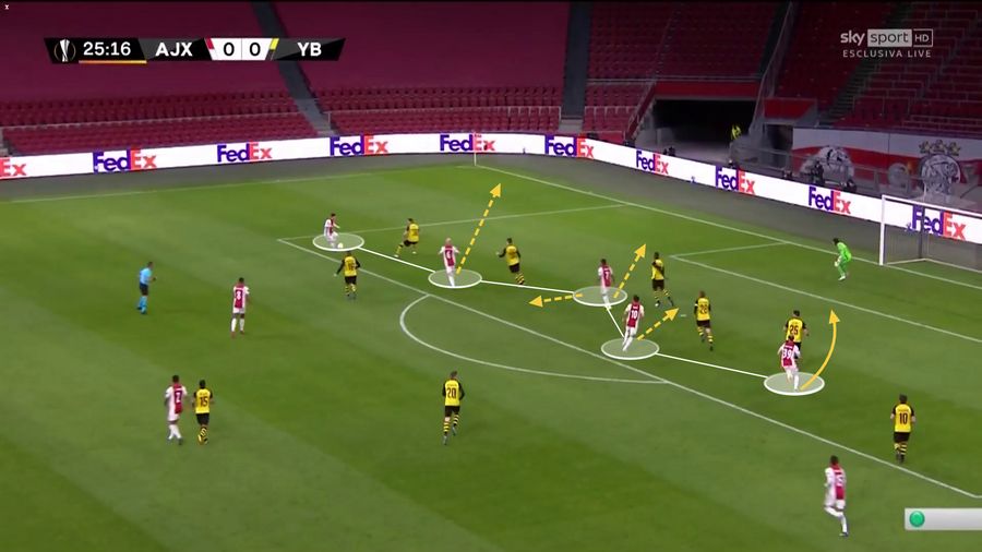Currently sitting top of the Eredivisie standings and fresh from ousting Young Boys 5-0 on aggregate, ten Hag has instilled many strong mechanics to ensure they're strong both defensively and offensively.