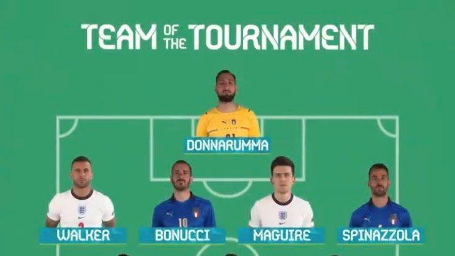 Donnarumma (ITA); Walker (ENG), Bonucci (ITA), Maguire (ENG), Spinazzola (ITA); Hojbjerg (DEN), Jorginho (ITA), Pedri (ESP); Chiesa (ITA), Lukaku (BEL), Sterling (ENG).