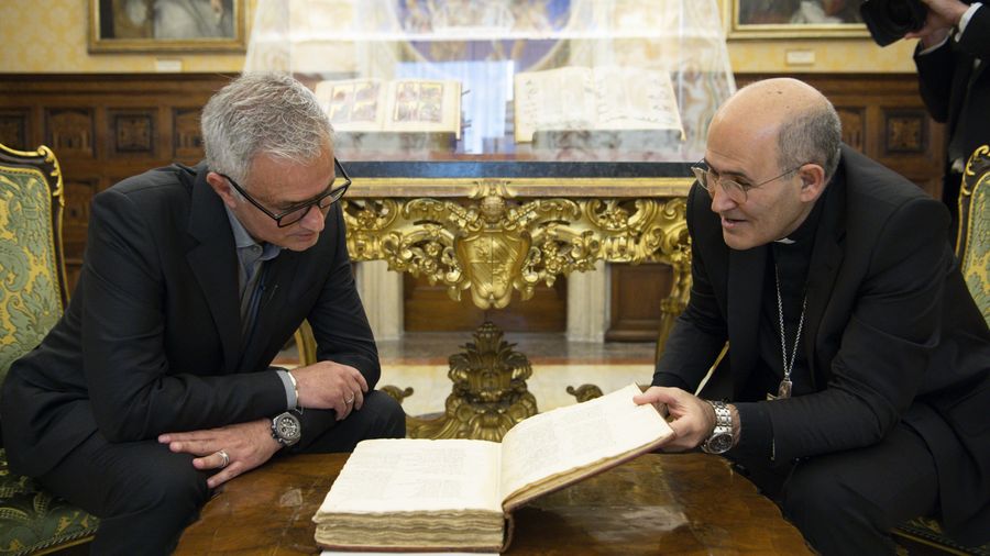Cardinal Tolentino: "I’m very pleased to be here in this library with you, Jose Mourinho, and I’d like to start off this conversation by talking about someone who, oddly enough, has inspired us both.