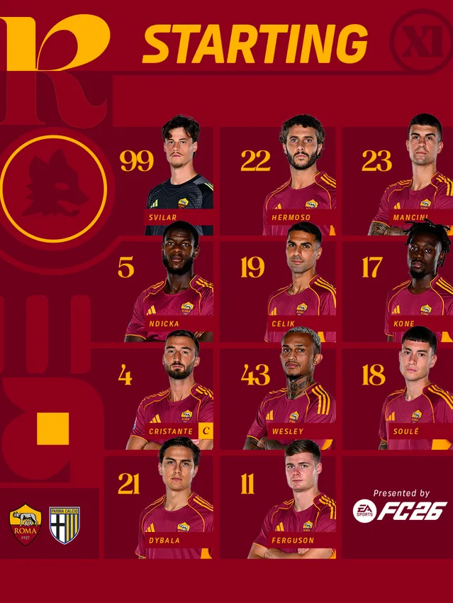 © 2018-2025 Soccer S.r.l. – EU VAT IT09305501000 - all rights reserved. The AS Roma names, logos and artwork are registered or unregistered trademarks of Soccer S.r.l. All other trademarks may be the property of their respective holders.