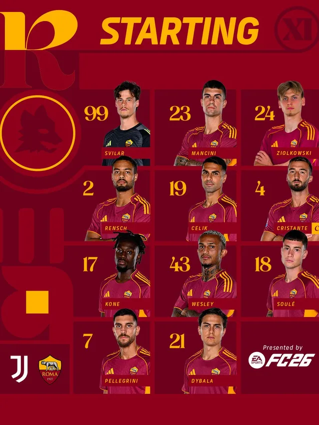 © 2018-2025 Soccer S.r.l. – EU VAT IT09305501000 - all rights reserved. The AS Roma names, logos and artwork are registered or unregistered trademarks of Soccer S.r.l. All other trademarks may be the property of their respective holders.