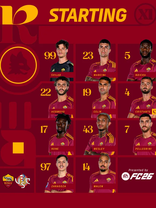 © 2018-2025 Soccer S.r.l. – EU VAT IT09305501000 - all rights reserved. The AS Roma names, logos and artwork are registered or unregistered trademarks of Soccer S.r.l. All other trademarks may be the property of their respective holders.