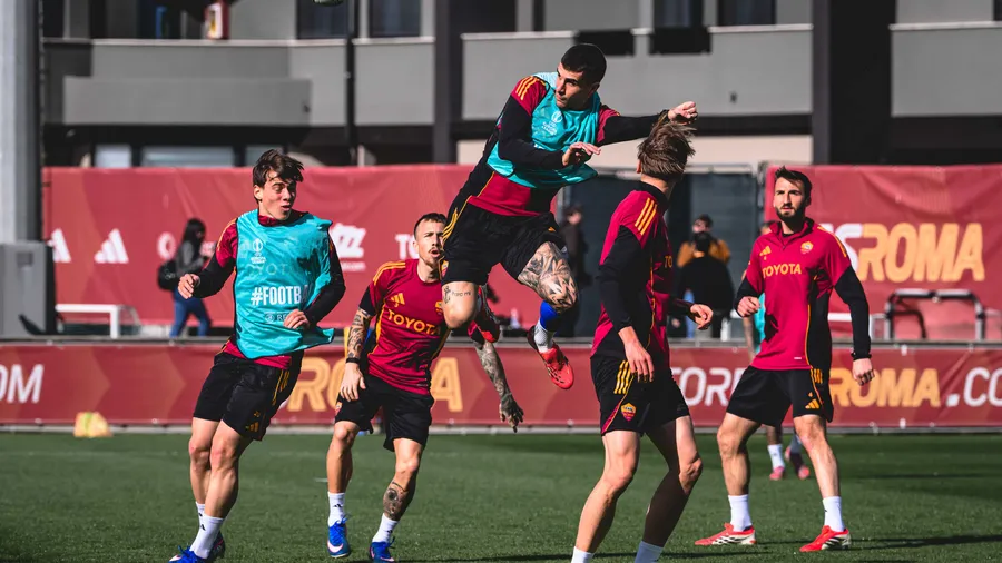 Here are the best shots from the session, on the eve of Roma-Bologna in the Europa League, the return of the round of 16.