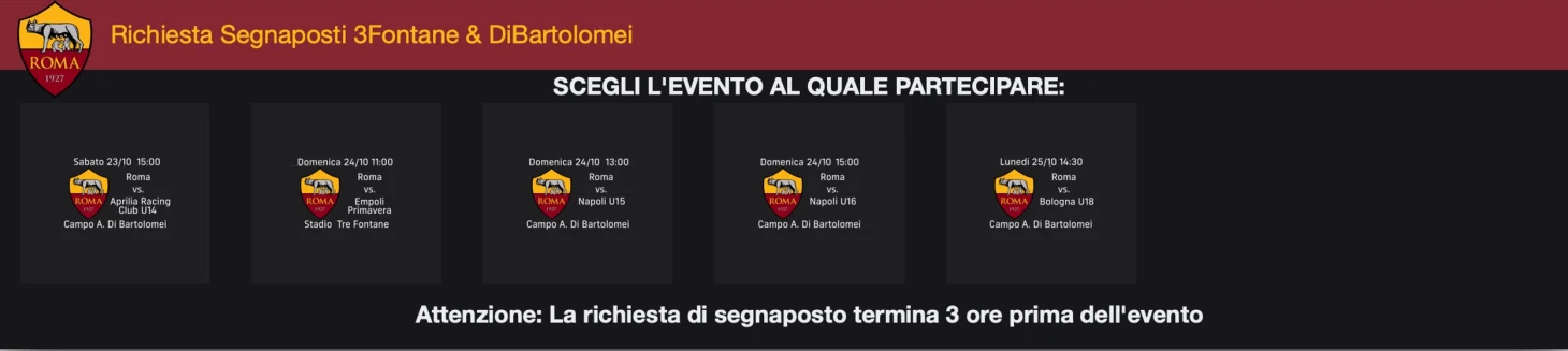 By accessing the portal (in Italian), fans will be able to choose from a list of games currently open for attendance requests.
