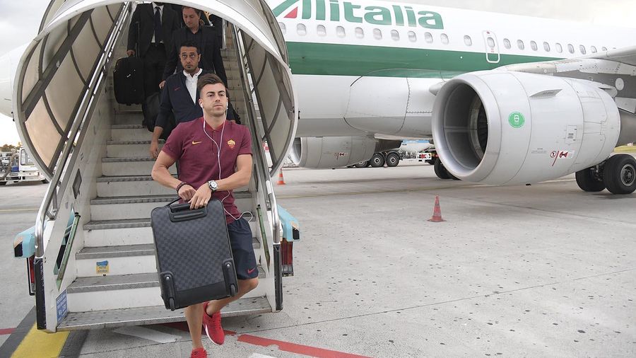 La Roma è arrivata a Bergamo, dove domani affronterà l'Atalanta per la prima giornata della Serie A 2017-18. Ecco le immagini del viaggio dei giallorossi.