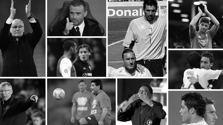 Sir Alex Ferguson, Diego Armando Maradona, Raul, Pelé, Luis Enrique, Claudio Ranieri, Gianluigi Buffon, Cristiano Ronaldo, Steven Gerrard e Thierry Henry rendono omaggio a Totti...