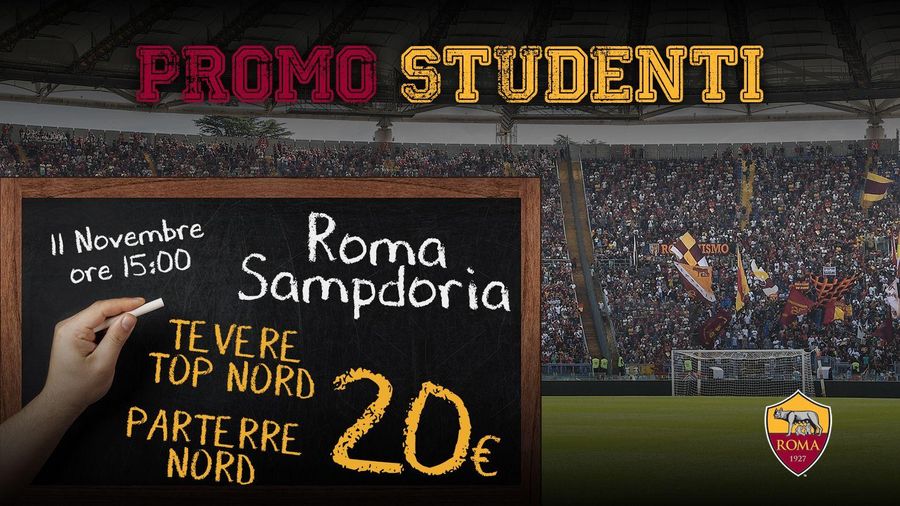 Nella sfida contro i blucerchiati, gli studenti di ogni ordine e grado potranno acquistare un biglietto per la Tribuna Tevere Top Nord e per la Tribuna Tevere Parterre Nord a soli 20 €!