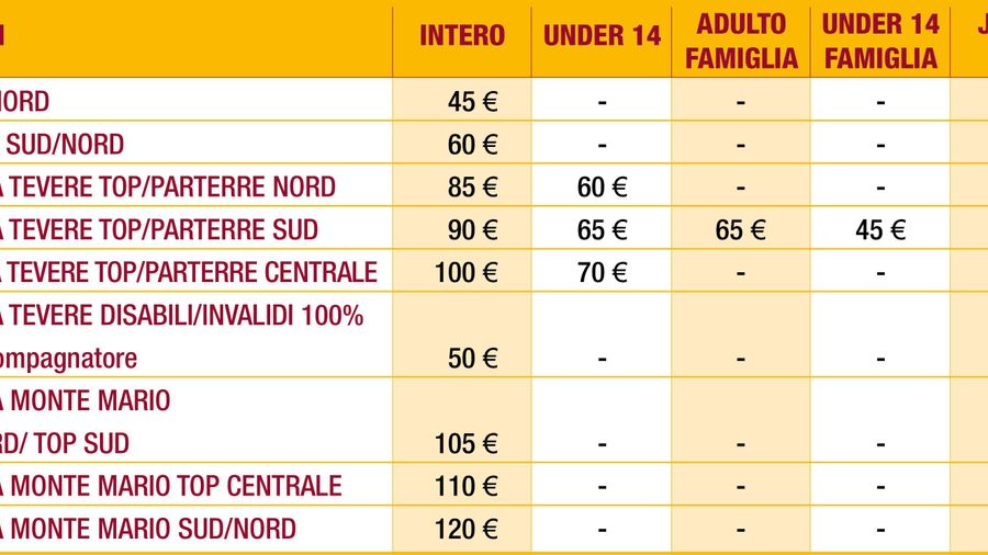 Di seguito le tabelle prezzi dei match sopraindicati.