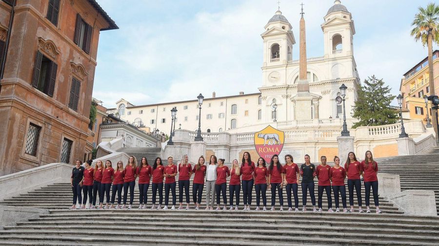 Mia Hamm non era presente ma anche la presentazione della squadra, alla vigilia dell’inizio del primo campionato a cui partecipa la Roma, è stato un vero e proprio appuntamento in stile hollywoodiano. Nel pieno centro della Capitale, a Piazza di Spagna, le calciatrici sono scese una a una dalla scalinata di Trinità di Monti per mano a un collega del settore maschile.