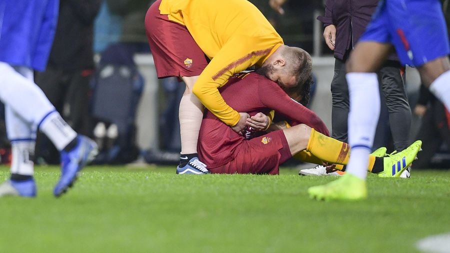 "L'abbraccio significativo di Daniele a Diego Perotti pochi secondi dopo il triplice fischio della gara di Champions al Do Dragao contro il Porto...".