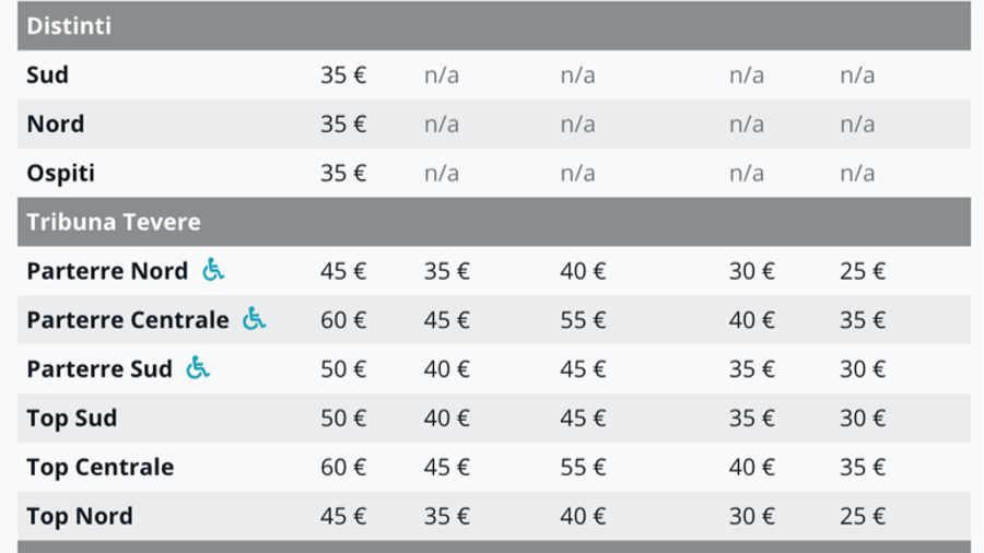 - Prezzo speciale (20€) per tutti gli studenti di ogni ordine e grado. Disponibile nei settori Tevere Top Nord e Tevere Parterre Nord. Per gli studenti universitari sarà necessario esibire il tesserino universitario, mentre per gli Under 19 sarà sufficiente un documento d’identità.