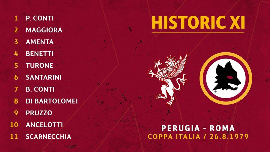 Infine, per l’uomo che decise la sfida: Agostino Di Bartolomei. Quello che sarebbe diventato il capitano del secondo scudetto. Perugia-Roma 0-1, Di Bartolomei. Così andò il 26 agosto 1979, allo stadio Renato Curi di Perugia.