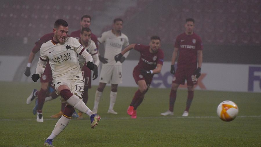 La formazione di Fonseca è in controllo e al 20’ viene assegnato un calcio di rigore ai giallorossi per fallo del portiere romeno su Mkhitaryan, che era appena subentrato insieme a Dzeko. Dal dischetto, Veretout non fallisce.