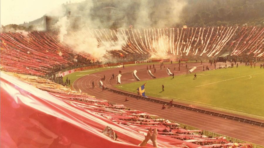Lo stadio Olimpico completamente incartato di giallo e rosso, nel campionato della rimonta quasi compiuta sulla Juventus. Quasi, se non fosse stato per quel Roma-Lecce successivo a questo Roma-Juventus. Segnano Graziani, Pruzzo e Cerezo. 3-0 tondo. 16 marzo 1986.
