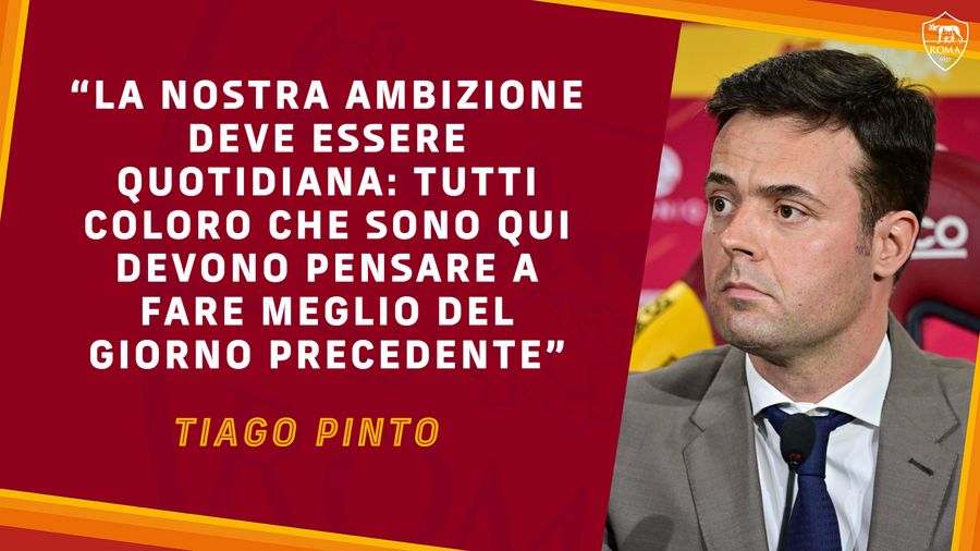 “Una volta di più vorrei ribadire il concetto che noi qui lavoriamo in squadra e che nessuno di noi si sente una superstar. Non è questo il mio modo di lavorare, non è questo il modo di lavorare dei presidenti. Il mio lavoro quotidiano riguarderà anche il mercato, ed è un lavoro che svolgerò in stretto contatto e in coordinazione con Dan e Ryan, ai quali evidentemente spetta la decisione finale. Siamo qui per lavorare e per cercare di far crescere la Roma, per lavorare in sinergia con le persone che attualmente lavorano alla Roma e non affinché tra qualche tempo si possa dire questa era un’idea di Tiago Pinto, questo è stato un acquisto di Tiago Pinto, perché, sebbene io ci lavori costantemente ogni giorno, lavoro di squadra e in particolare a stretto contatto con Dan e Ryan”.