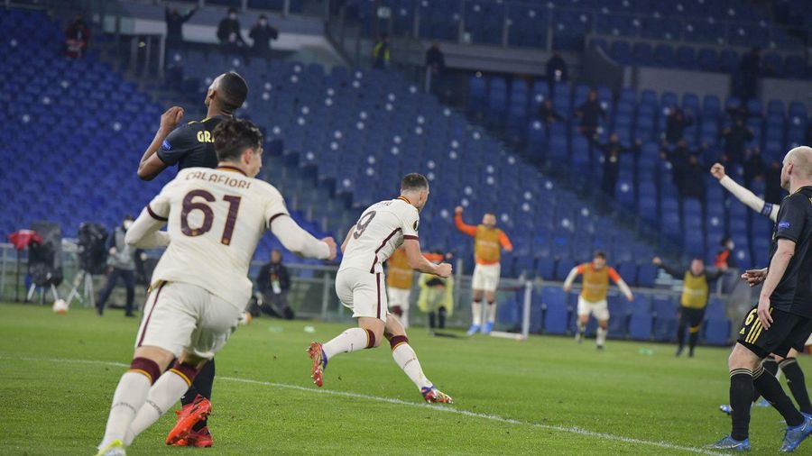 Al 5’ contropiede giallorosso: Pellegrini si invola in profondità da solo, affiancato da Klaiber. Il 7 si libera in area, ma conclude debole e centrale per Stekelenburg. Al 10’ risponde l’Ajax dagli sviluppi da un corner, colpo di testa di Tagliafico, alto. Al 13’ ghiotta occasione per l’Ajax, Pau Lopez sbaglia un disimpegno, ne approfitta Antony, palla in mezzo per Klaassen, ma il tiro a porta vuota viene stoppato da Diawara. Al 14’ conclusione di Pellegrini dal limite, Stekelenburg c’è. Al 20’ iniziativa di Klaiber sulla destra, palla in mezzo per Tadic, Pau Lopez para. La partita è abbastanza bloccata, il primo tempo scorre via senza troppi altri sussulti. La squadra di Fonseca segna anche un gol con Veretout, ma il francese è in fuorigioco. Lo spartito del match è chiaro: l’Ajax fa la partita tenendo la palla, arrivando a un parziale di possesso di 75-25, ma la Roma è attenta e non rischia praticamente nulla.