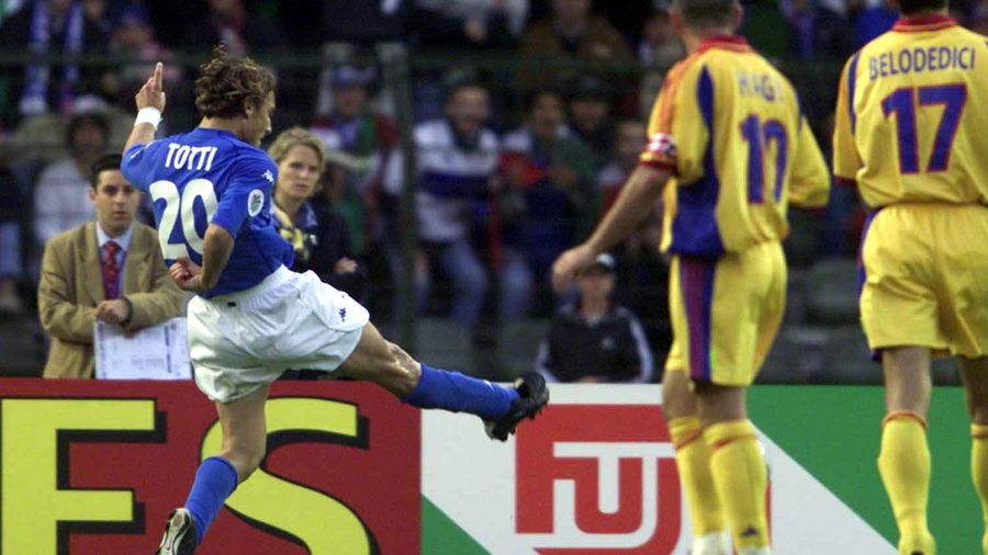 Nella stessa partita fa il suo debutto in una competizione internazionale per nazionali maggiori Francesco Totti. Con il numero 20 sulle spalle, dopo le esperienze nell’Europeo di categoria under 21 (vinto nel 1996) e nei giochi del Mediterraneo del 1997 al fianco di Nicola Ventola in attacco (vinti anche quelli), il 10 della Roma inizia alla grande il torneo diventando giocatore imprescindibile per il ct Zoff, realizzando due gol, contro Belgio e Romania, trascinando i compagni fino in semifinale.