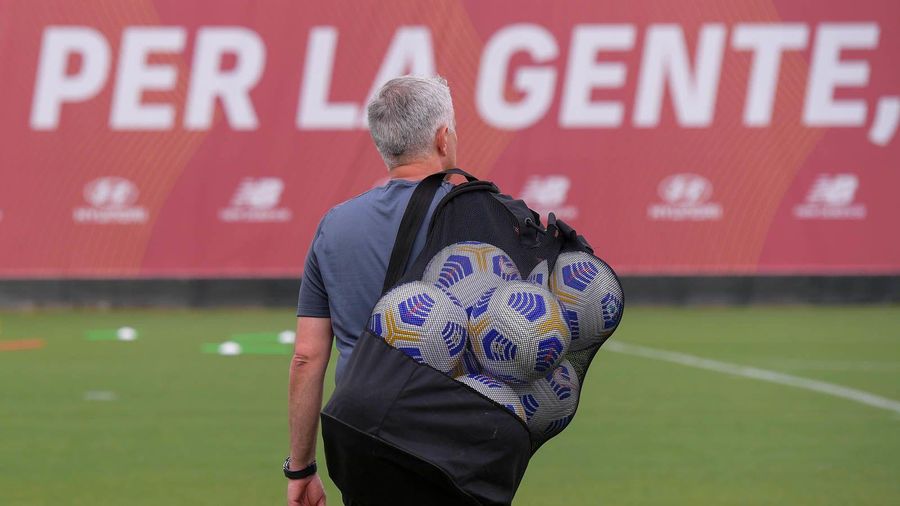 Accade spesso che il Mister, in occasione degli allenamenti, si carichi sulle spalle il materiale tecnico. Come dimostra questa foto, scattata durante una delle prime sedute di lavoro da allenatore giallorosso.