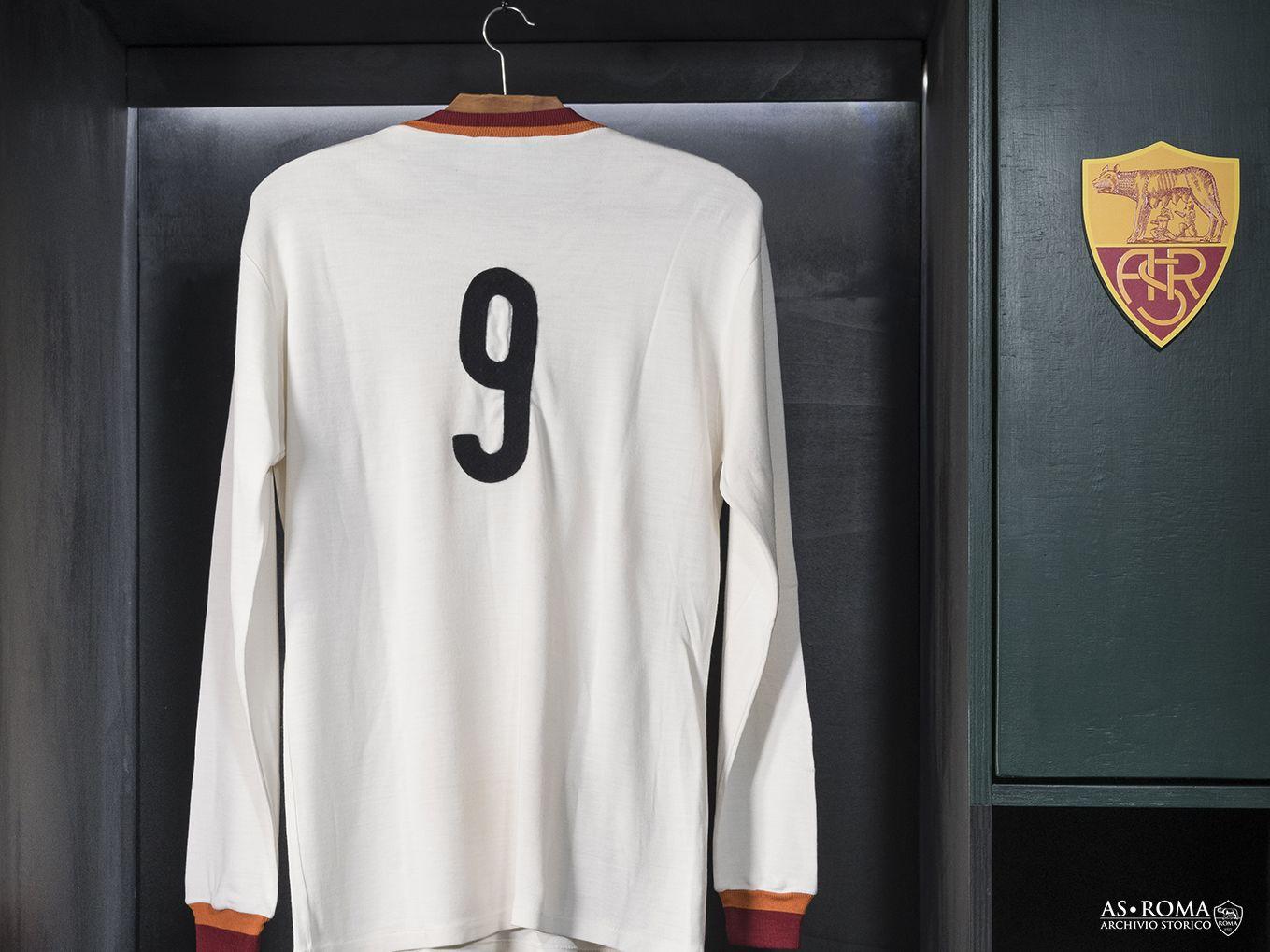 Maglia bianca numero 9 a maniche lunghe con girocollo in rosso e arancio e polsini in arancio e rosso, indossata da Gianfranco Zigoni nella finale vinta 3-1 contro il Blackpool.