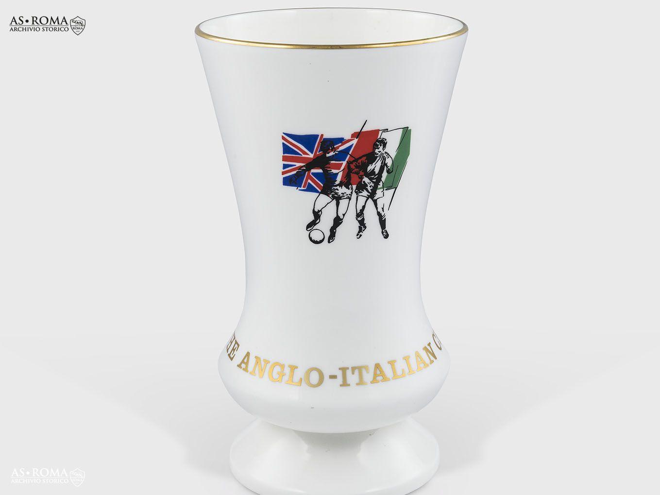 Riproduzione in scala realizzata in porcellana del trofeo. Sull'orlo l'iscrizione "The Anglo-Italian Challenge Cup 1972", in color oro.