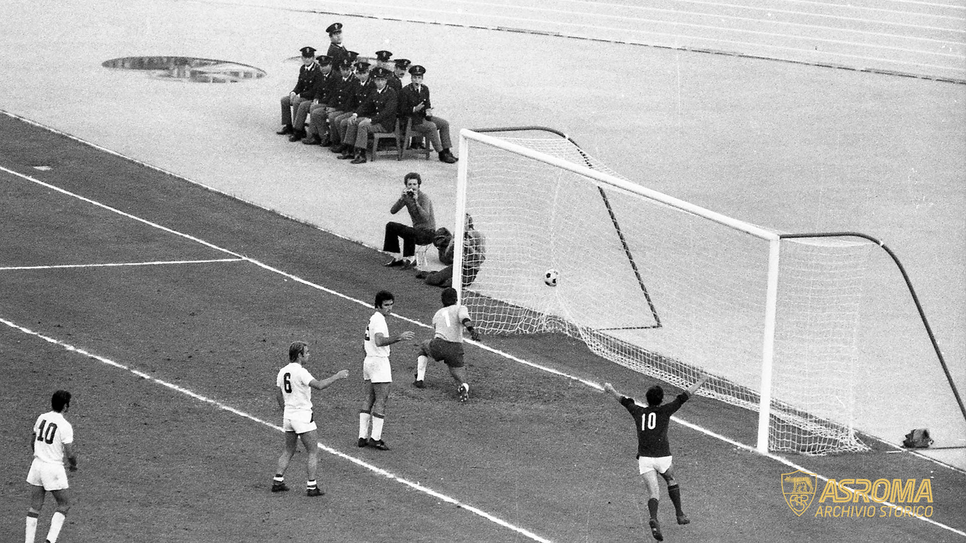 In piedi: Prati, Rocca, Batistoni, Spadoni, Ginulfi, Santarini. Accosciati: Di Bartolomei, Cappellini, Peccenini, Morini, Domenghini (Archivio Storico AS Roma / Dufoto)