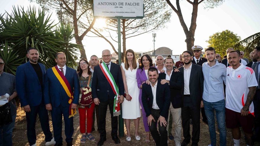 Nel corso dell’evento – patrocinato dal Comune di Roma – il Sindaco di Roma, Roberto Gualtieri, ha svelato la targa toponomastica “Parco Antonio De Falchi: vittima della violenza negli stadi (1970-1989)”, togliendo un drappo giallorosso.