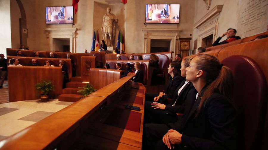 "Per tutte noi è un onore tornare in Campidoglio. Ringraziamo il Comune per questo invito - l'intervento della capitana Manuela Giugliano - e speriamo che possa continuare ad essere un’abitudine perché significherebbe aver vinto altri trofei per questa città".