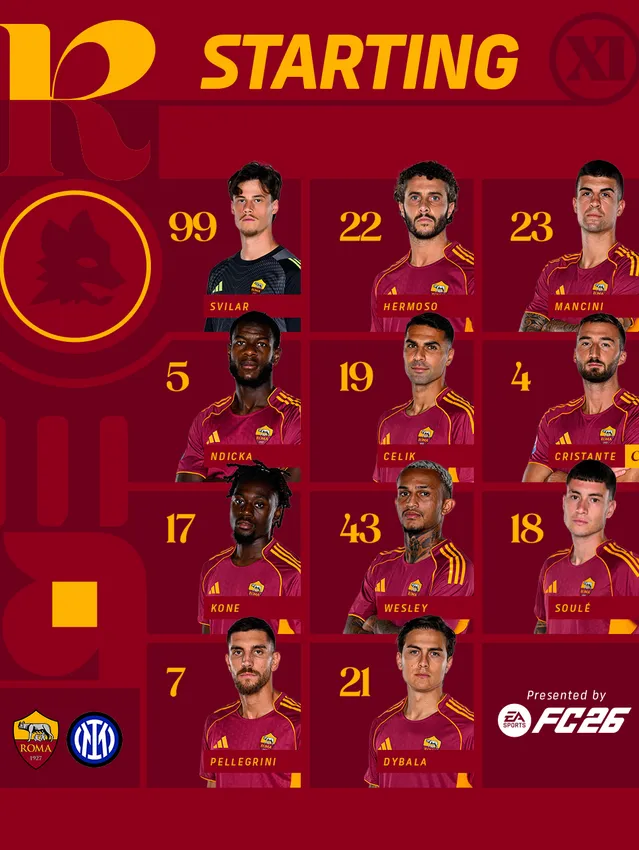 © 2018/2025 Soccer S.r.l. – P.IVA 09305501000 - tutti i diritti riservati. I nomi AS Roma, i loghi e le immagini sono marchi registrati o non registrati di Soccer S.r.l. Tutti gli altri marchi possono essere di proprietà dei rispettivi titolari.