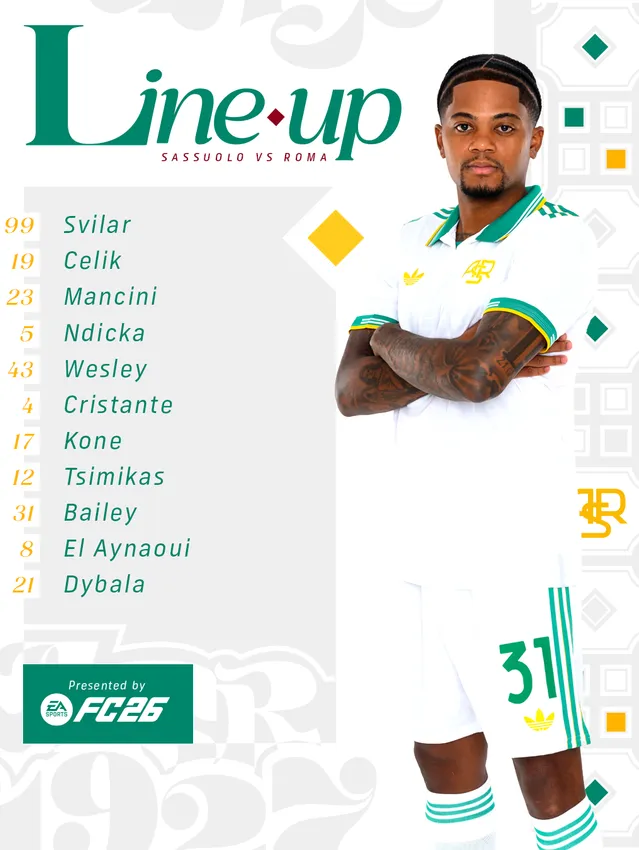 © 2018/2025 Soccer S.r.l. – P.IVA 09305501000 - tutti i diritti riservati. I nomi AS Roma, i loghi e le immagini sono marchi registrati o non registrati di Soccer S.r.l. Tutti gli altri marchi possono essere di proprietà dei rispettivi titolari.